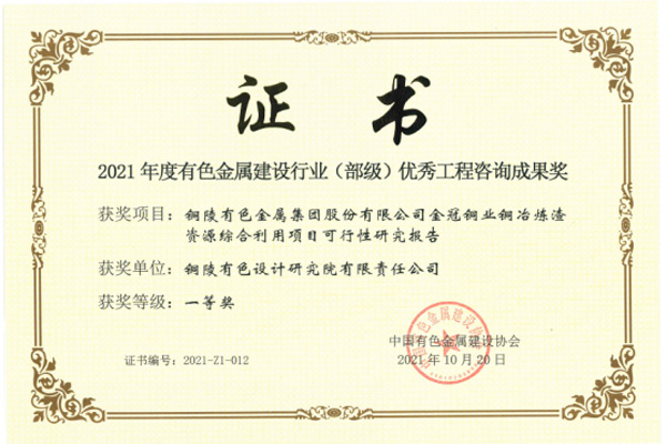 銅陵有色金屬集團(tuán)公司銅冶煉爐渣資源綜合利用項(xiàng)目